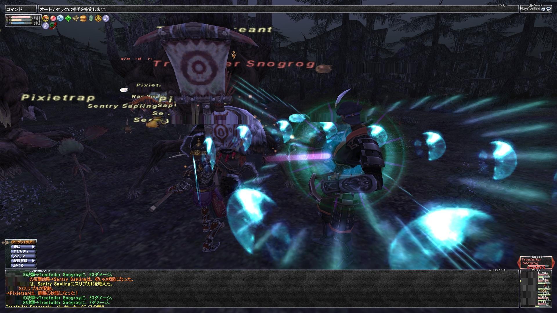 ザコは睡眠時リゲインのため、起きたときにタゲ持ちが範囲内にいるとかならずTP技を使用。
