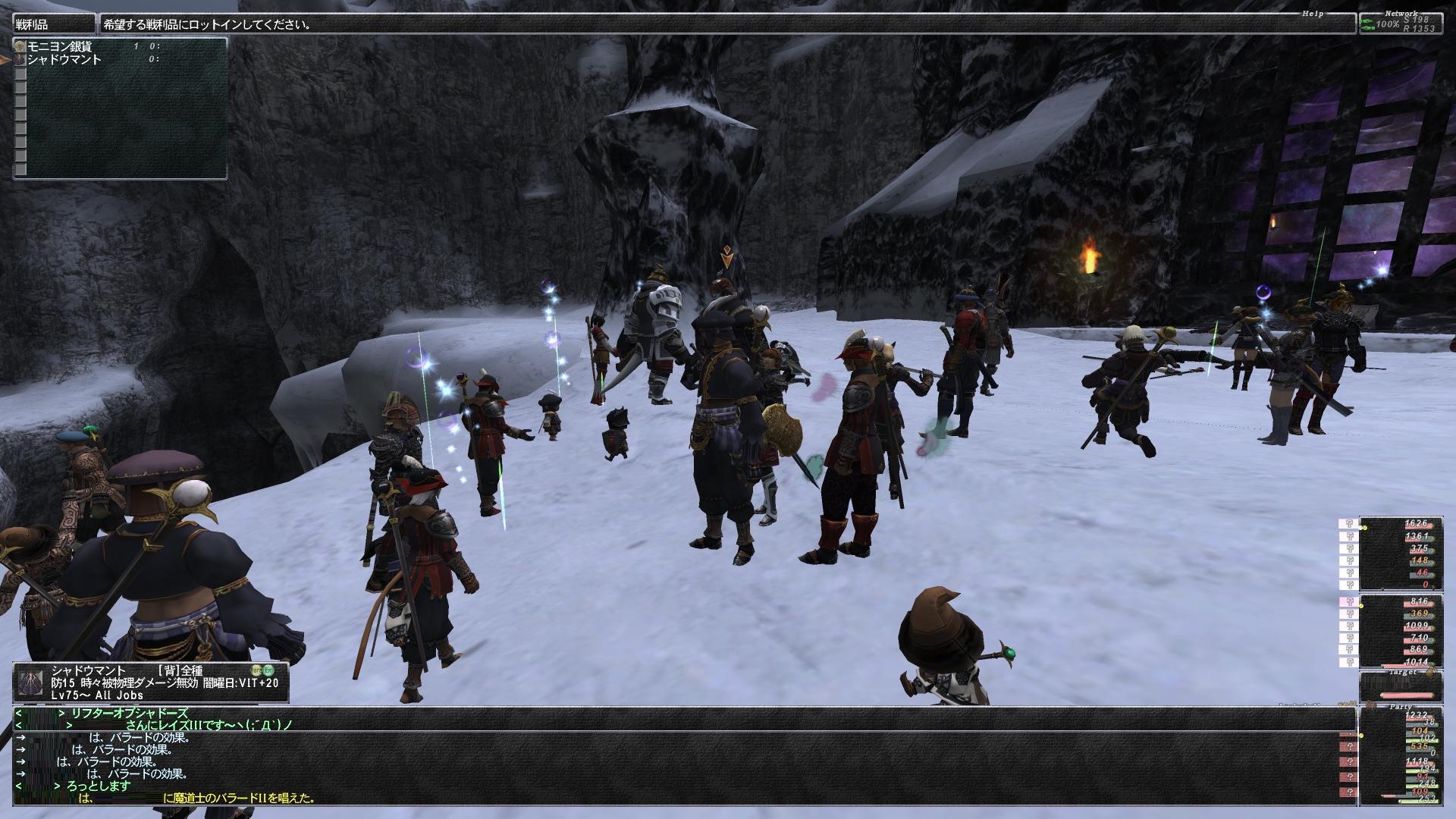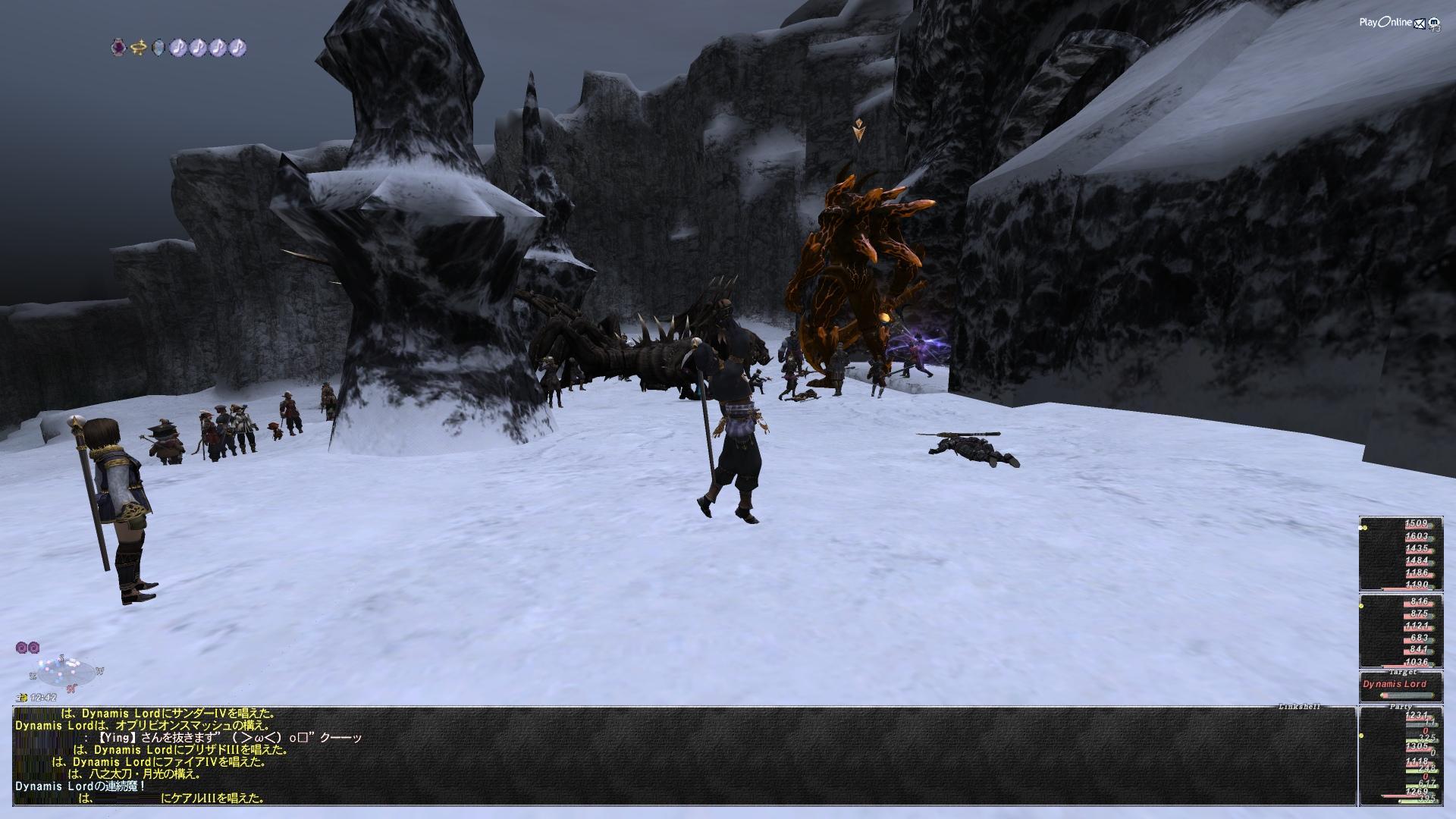 それでもこの日は37人wと普段よりかなり多かったのもあって、NM砦の目玉もガンガン精霊で落としまくったりして時間短縮しつつ延長取りつくしてズヴァールへ上がる坂のドラゴンを片付けてるあたりで2/5くらいの人々がジョブの変更で一時帰還した。