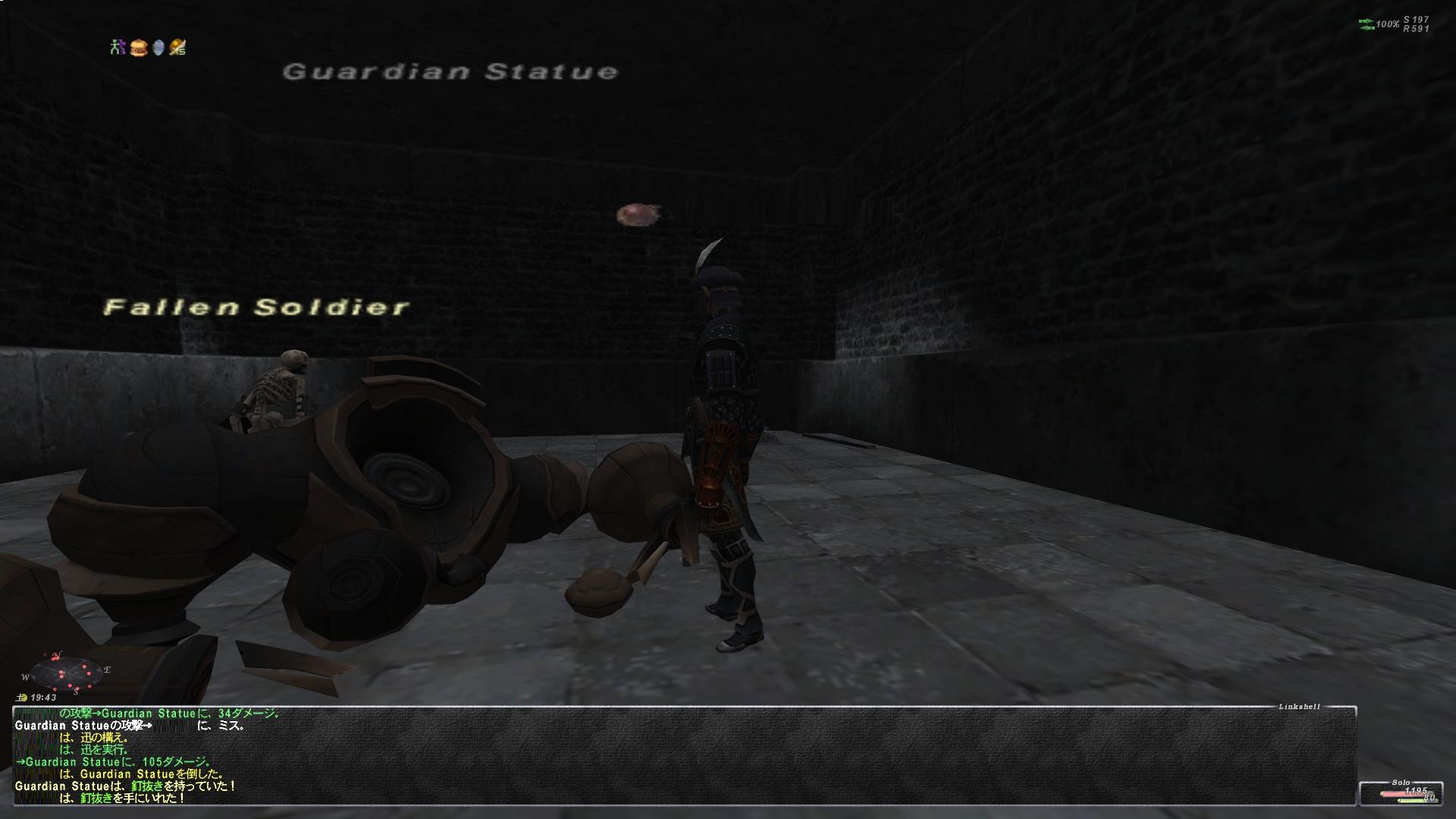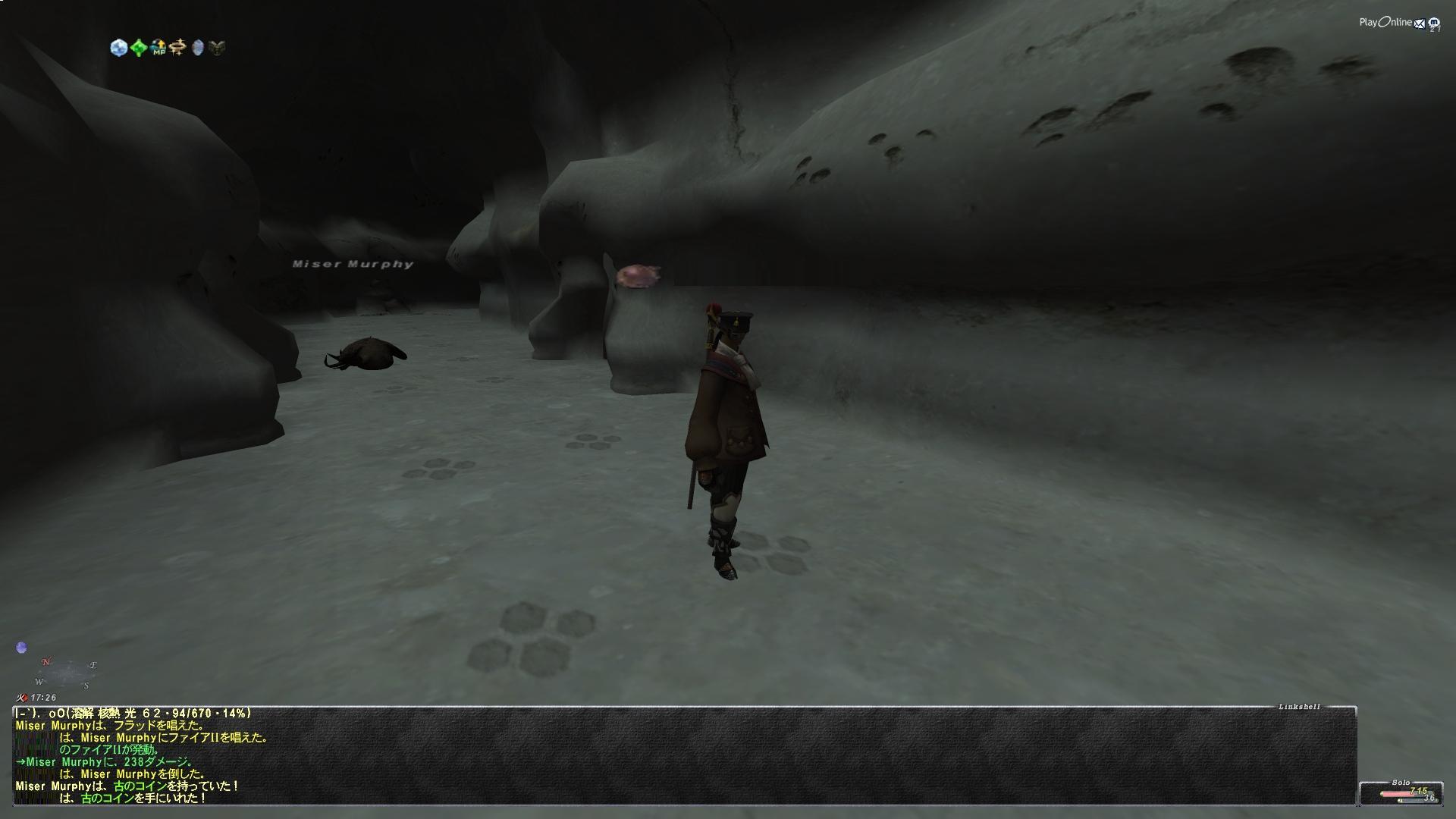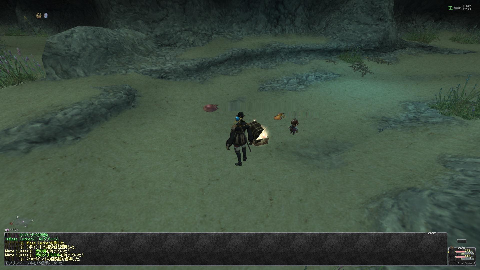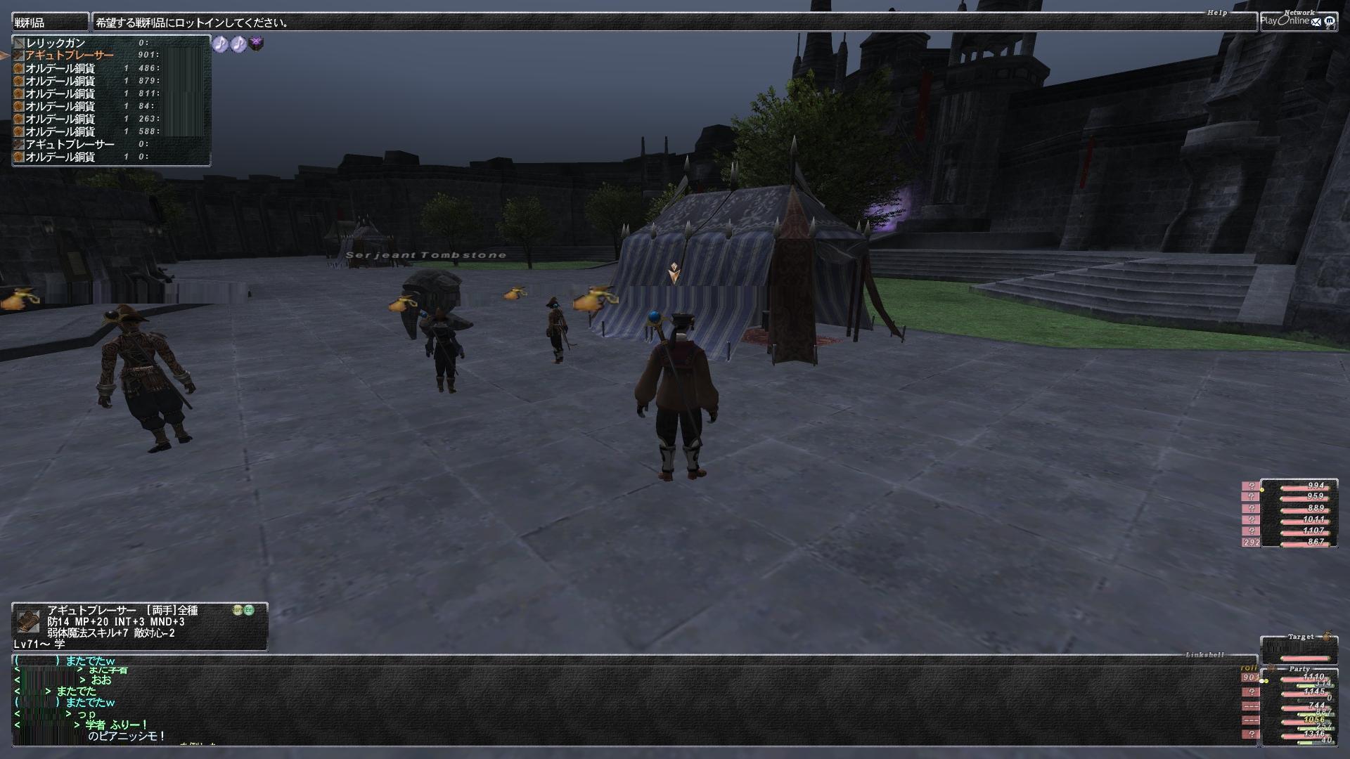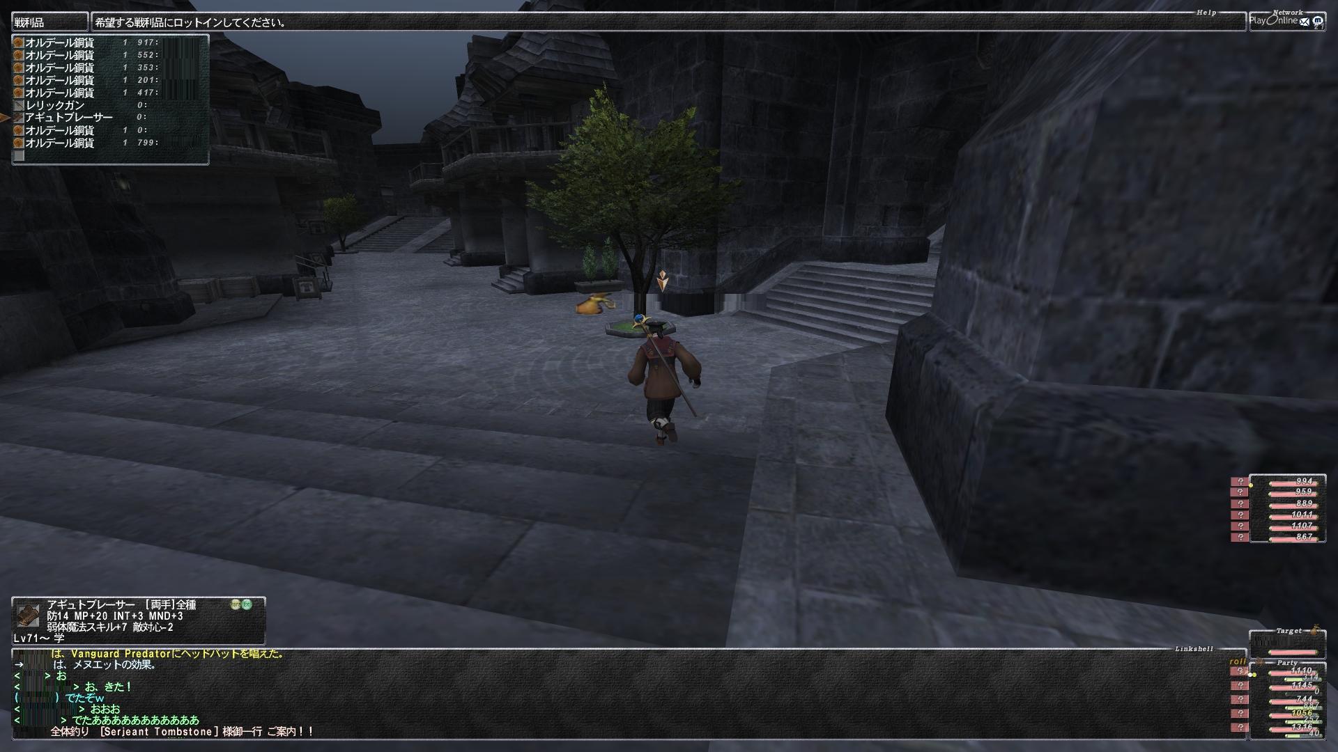 んでゴールデンならたぶん一門前でれべらげしてるPTがいるだろうからそれ期待して行ってもいいけど、そんなところでハマりたくなかったオレは過去経由で一門抜けたところへ移動した。なんか途中ですれ違った外人が【ちょっといいですか】ってテルしてきたけどシカト。ちょっとでもダメ。