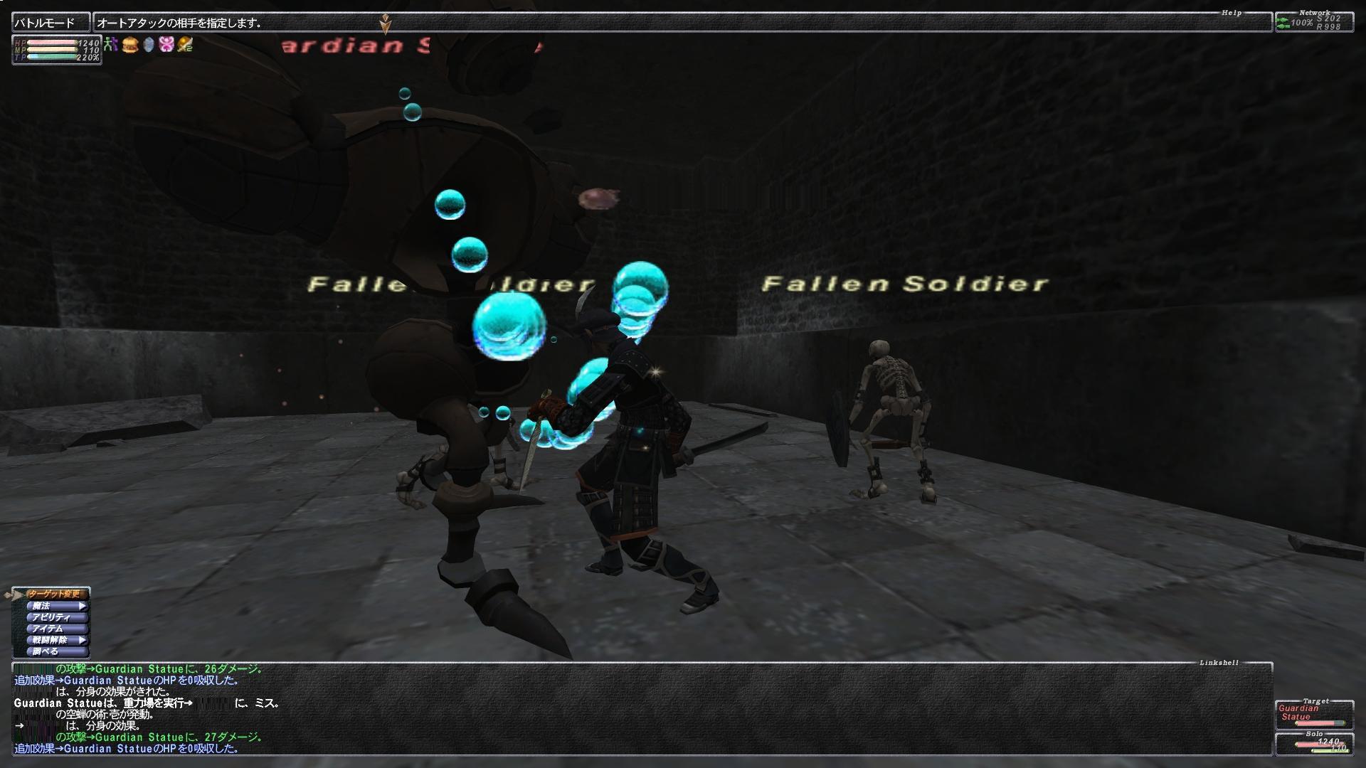 NMはちょっと引き離したら古代詠唱中とかに簡単にタゲ切れちゃうのね。んで黄色ネームになったあと魔法撃てる間合いまで接近したときにHPが黄色いとよゆーで生命感知してきてさw