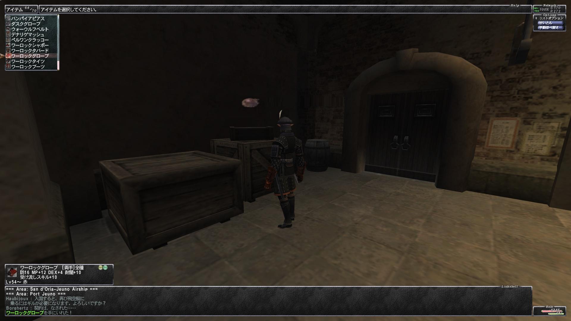あらかじめ古墳で古びた小手入手→ジュノ上層→港競売前→闇の炎げっとまで進めといたオレはそのままジュノ港でAF手をもらって、