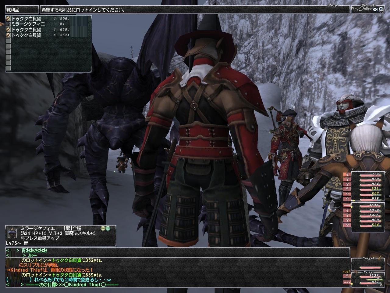今回のトライで何回目か知らんけど、盾NM>>>>>>>その他 って強さだから倒すだけならたいしたことはない。この日はナイトひとりだったから蝉盾で回したのかインビン使ったのかすら知らないくらいわりとなんでもいいや系。