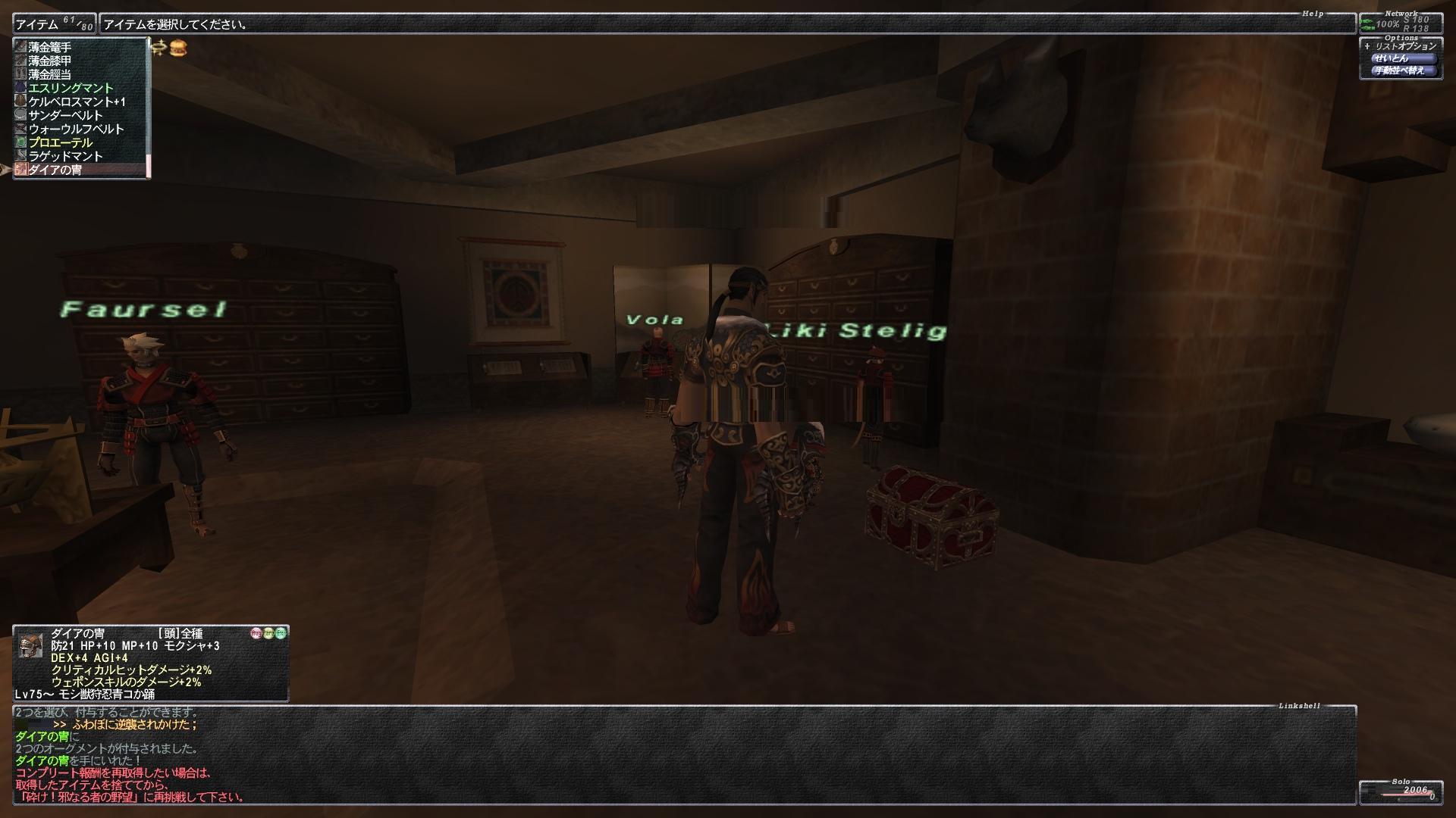 だいぶ前にとったモグ頭はダイアの冑「STR4・WS命中15+命中10・攻5」で、アイアスもってないからWSのときはこれを愛用してるんだけど、せっかくアビセアでダメージインフレしてるわけだし%アップでダメ伸びるとかちょっと気になりますし・・・と前から思ってた。